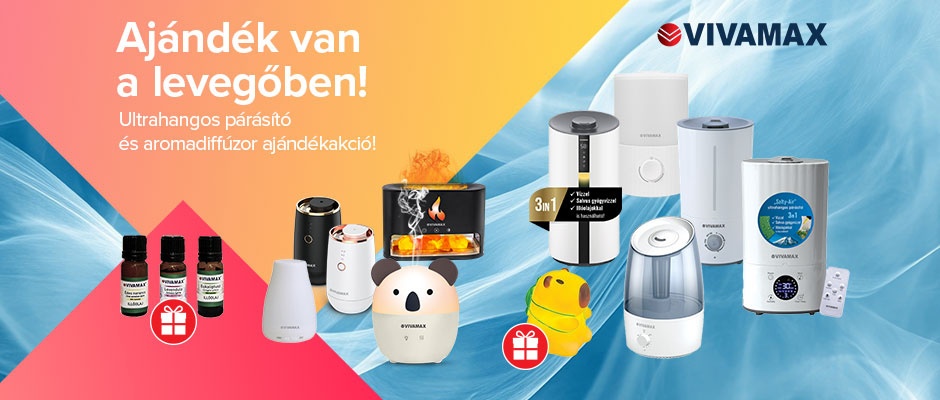 Az akcióban szereplő aromadiffúzorokhoz illóolaj csomagot, az akcióban szereplő ultrahangos párásítókhoz pedig Capybara éjszakai fényt adunk ajándékba.